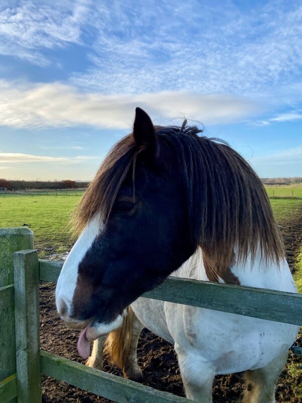 Hello, I’m Harry, pleased to meet you. I live in the big boys field, and I really like eating as much as possible. I always try to get to the hay first, but as Uist is the oldest, he makes me wait patiently till he’s had a bite! I’m really excited to be at MRT, and enjoy my therapy sessions as well as my rides around the Farm