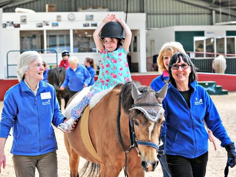 People of all ages, with a wide range of disabilities and life-affecting conditions, both physical and mental can benefit from equine facilitated therapy at Muirfield Riding Therapy.